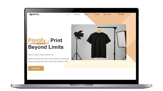 A modern eCommerce web application for custom t-shirt printing. Designed with responsive UI and smooth checkout flow to enhance user engagement and conversion rates.