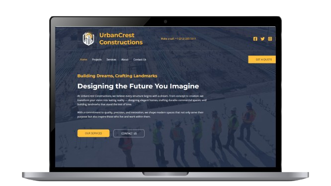 We developed a polished, responsive website for UrbanCrest that reflects their 25+ years of construction excellence. The site clearly presents their key services — architecture, material supply, land preparation, consultancy — and uses standout visuals to reinforce credibility. We focused on clean navigation, mobile-friendly design, and showcasing their large project portfolio.
